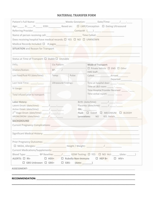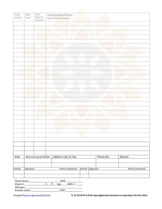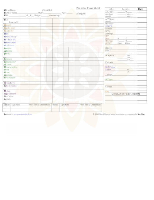 WARM Midwifery Charts Templates - Pre and Postnatal Set (Horizontal)